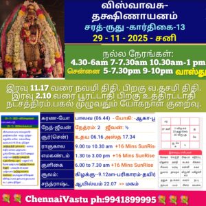 தினசரி நாள்காட்டி 29-11-2025 விஸ்வாவசு வருடம் கார்த்திகை மாதம் 13ந் தேதி. சனிக்கிழமை. இரவு 11.17 வரை நவமி திதி. பிறகு வ.தசமி திதி. இரவு 2.10 வரை பூரட்டாதி பிறகு உத்திரட்டாதி நட்சத்திரம்.பகல் முழுவதும் யோகநாள் குறைவு. சந்தராஷ்டமம்: ஆயில்யம் மகம்.