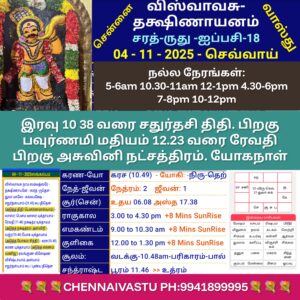 தினசரி நாள்காட்டி 4-11-2025 விஸ்வாவசு வருடம் ஐப்பசி மாதம் 18ந் தேதி. செவ்வாய், இரவு 10 38 வரை சதுர்தசி திதி. பிறகு பவுர்ணமி மதியம் 12.23 வரை ரேவதி பிறகு அசுவினி நட்சத்திரம். யோகநாள் . சந்தராஷ்டமம்:பூரம் உத்திரம்.
