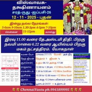 தினசரி நாள்காட்டி 12-11-2025 விஸ்வாவசு வருடம் ஐப்பசி மாதம் 26ந் தேதி. புதன்கிழமை. இரவு 11.00 வரை தே.அஸ்டமி திதி. பிறகு நவமி மாலை 6.22 வரை ஆயில்யம் பிறகு மகம் நட்சத்திரம். யோகநாள் . சந்தராஷ்டமம்: