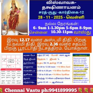 தினசரி நாள்காட்டி 28-11-2025 விஸ்வாவசு வருடம் கார்த்திகை மாதம் 12ந் தேதி. வெள்ளிக்கிழமை. இரவு 12.17 வரை அஸ்டமி திதி. பிறகு வ.நவமி திதி. இரவு 2.36 வரை சதயம் பிறகு பூரட்டாதி நட்சத்திரம். யோகநாள். சந்தராஷ்டமம்: . பூசம் ஆயில்யம்.