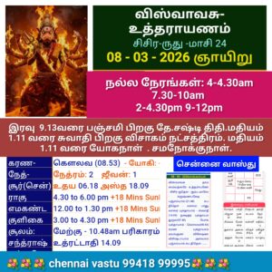 (நான் கொடுக்கும் தினசரி காலண்டர் நேரம் சென்னை நேரத்தின் அடிப்படையில் ஆகும். நான் கொடுத்த நேரத்தில் இன்று மட்டும் 30 நிமிடம் சேர்த்து பாருங்கள். இன்று சென்னை சூரிய உதயம் காலை 6 மணி 30
